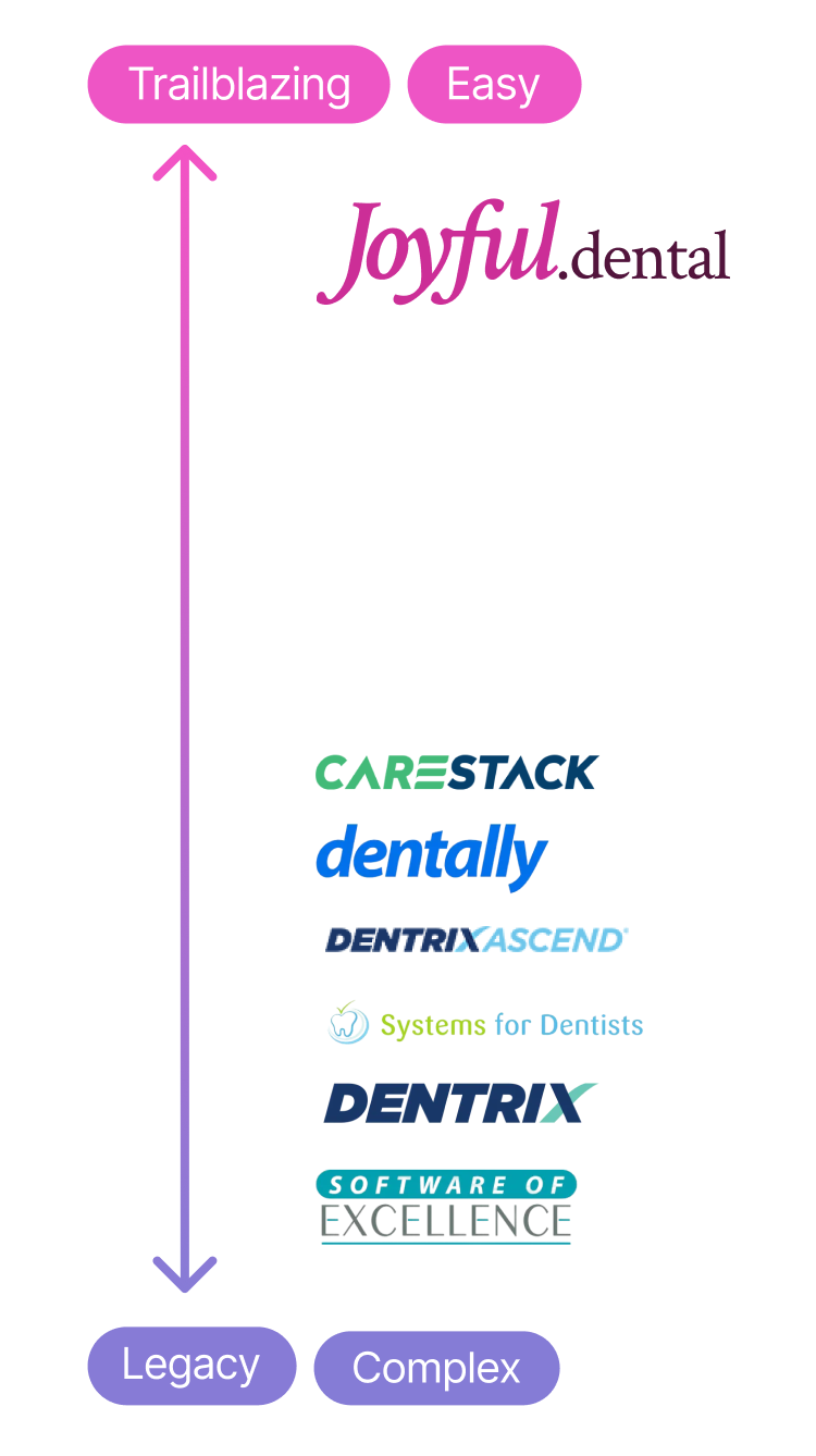 Every startup needs its moonshot - an idea so unfathomably ambitious that outsiders might find it laughable. Our impossible dream is to make dental software that you don’t hate. In fact, you might even find it’s a joy to use. Call us foolhardy. Call us reckless. That’s our mountain, and we’re planting our flag on it.